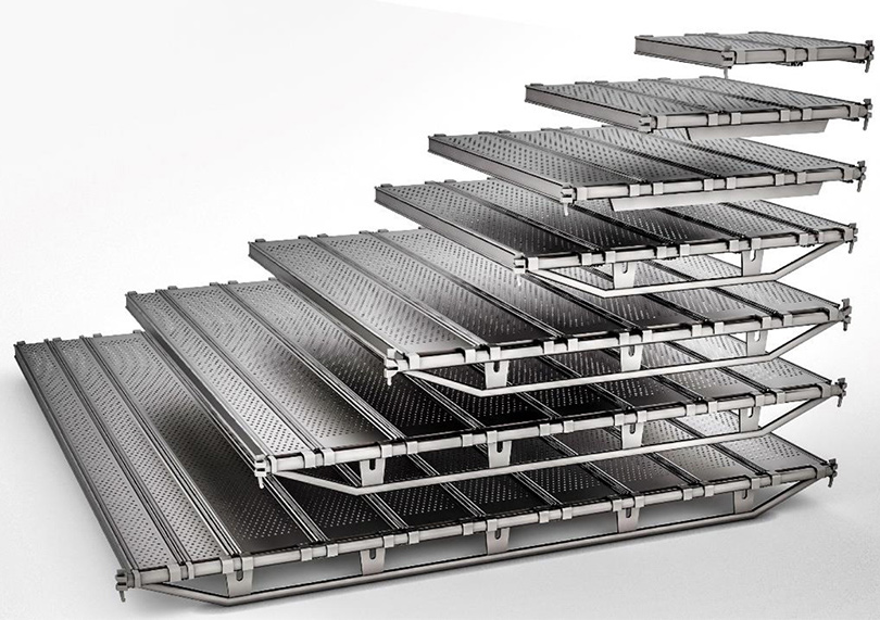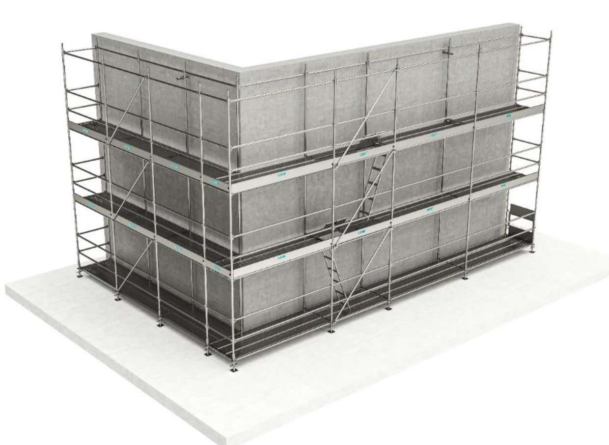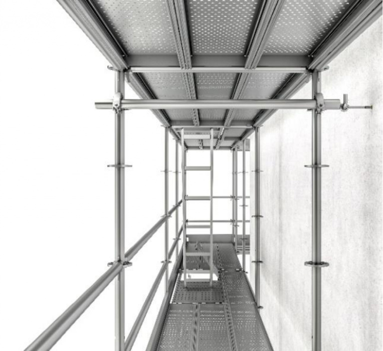 Des disques de 10 mm d'épaisseur sont soudés aux montants tous les 50 cm, permettant une connexion simple et robuste pour les moises et les diagonales. Cette conception augmente considérablement la stabilité du système. L'échafaudage Ringlock est principalement utilisé pour les façades, les tours d'escalier et les structures événementielles.