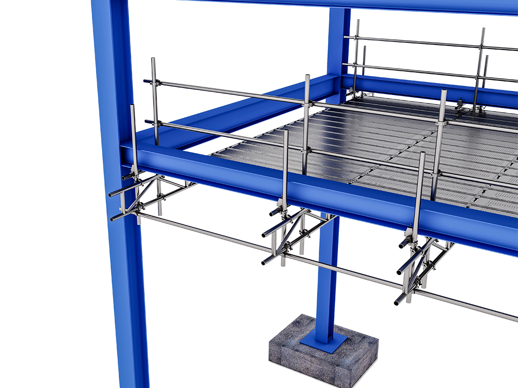 Grâce à sa conception modulaire, le système peut être configuré comme un échafaudage roulant pour une mobilité maximale sur des surfaces planes, ou comme un système suspendu rigide pour contourner les obstacles complexes des tuyauteries industrielles (Piperacks). La rapidité de montage permet de minimiser les temps d'arrêt lors des opérations de maintenance.